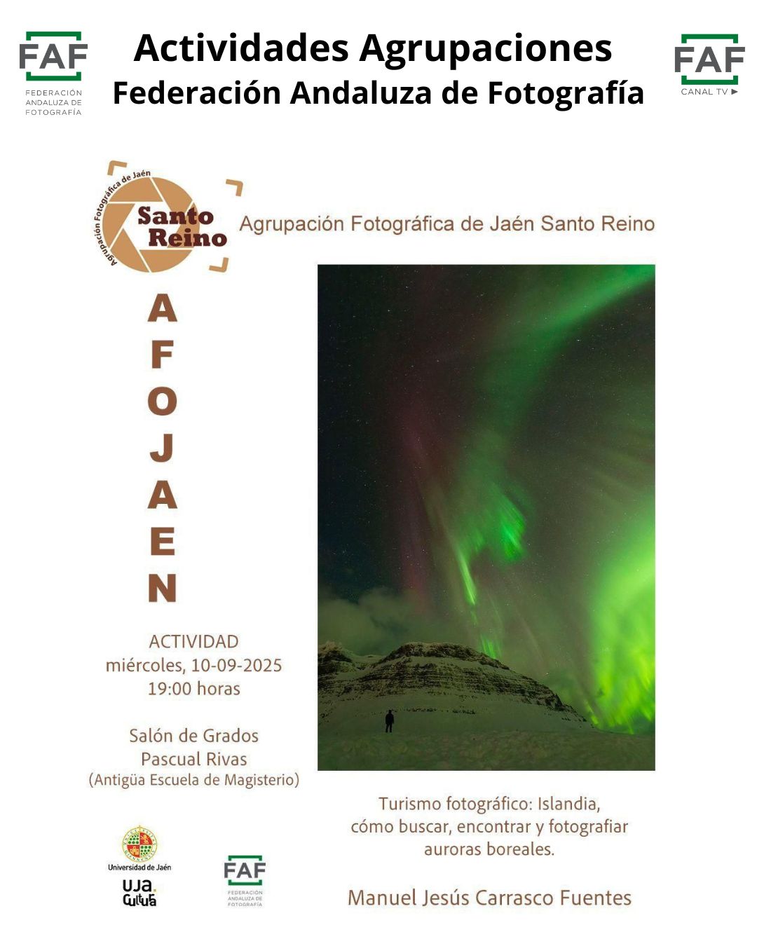 2025-09-10. CONFERENCIA . Turismo fotográfico. Islandia Categoría: Noticias 06 Septiembre 2025 Siguiente